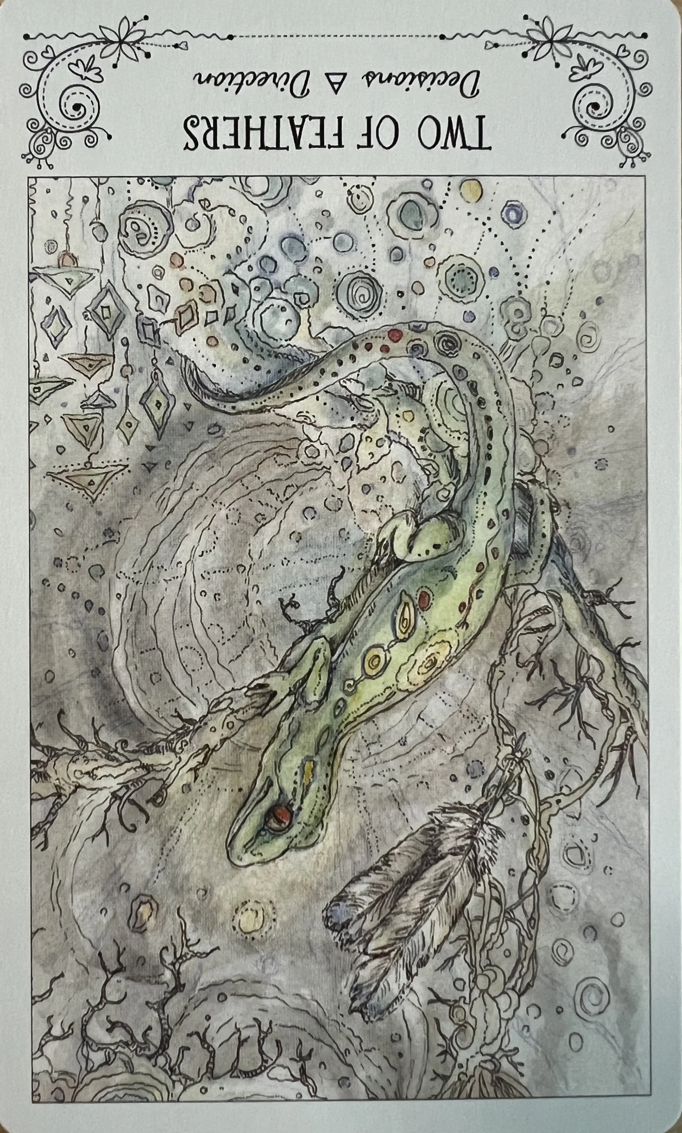 In reversal, the Two of Feathers speaks to an inner standoff—a tug-of-war between mind and heart, logic and intuition. When you finally allow yourself to receive, the internal gridlock loosens. But first, you must stop trying to "figure it out" and let the answer reveal itself.